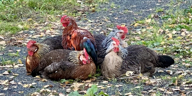 Caption: Galline da fiore svedesi sul palo di 2 metri