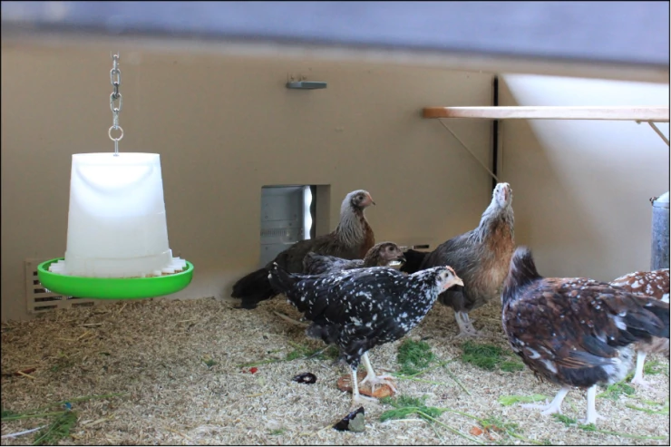 Caption: Casetta interna per galline con porta automatica e luce Omlet