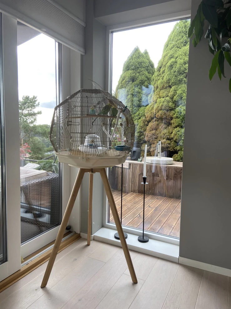 Caption: Questo è harry sul balcone del lato strada di b.g. dove passano molte persone, compresi gli stranieri che scattano foto e vogliono sapere tutto sulla grande gabbia