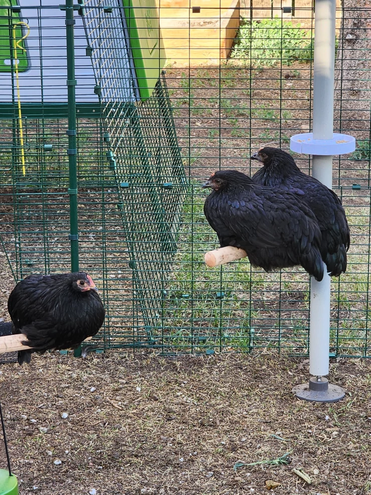 Caption: Due black star e un pullo australorp che si Godono i loro posatoi standard.