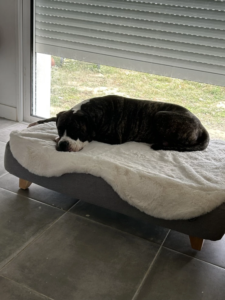 Caption: Casper si riposa sulla sua ciambella.