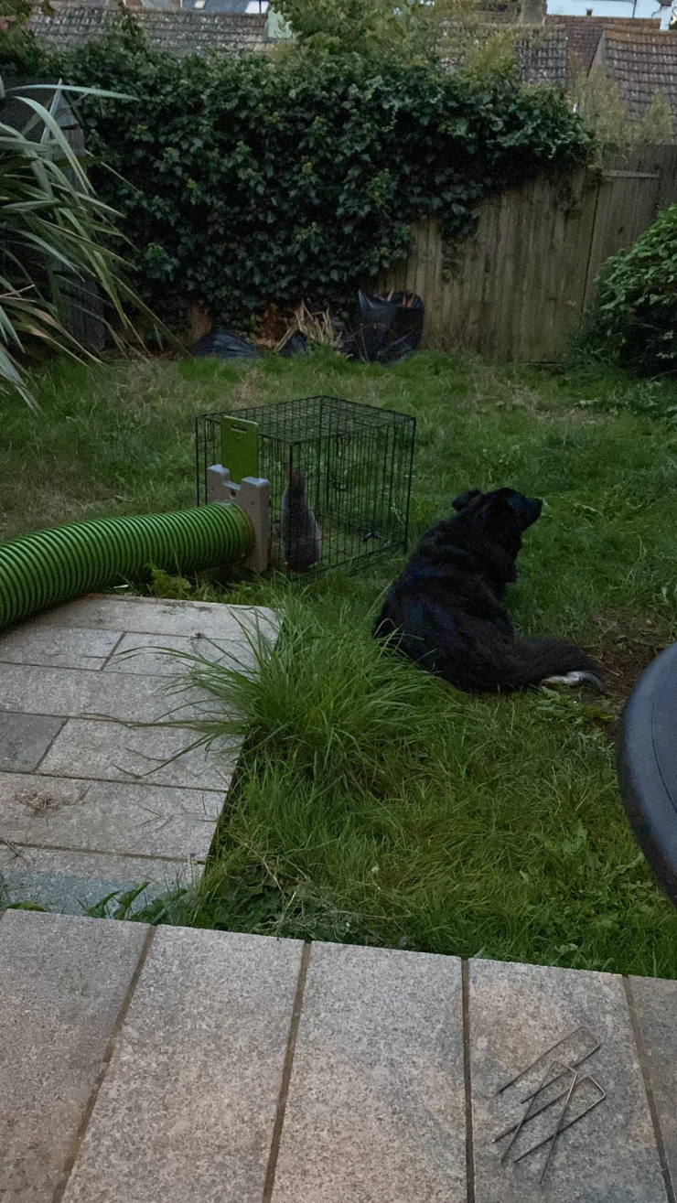 Caption: Conigliera per porcellini d'india + recinto 6x9 nel nostro giardino.
