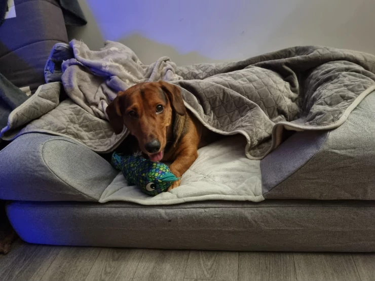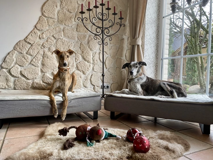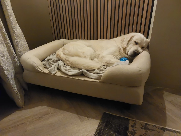 Caption: I nostri cani linus e marley sono stati subito entusiasti delle cucce. sono di alta qualità e offrono ai nostri cani di grossa taglia uno spazio sufficiente per riposare dopo le loro passeggiate. molto decorative Luxusbeds!