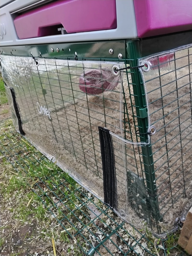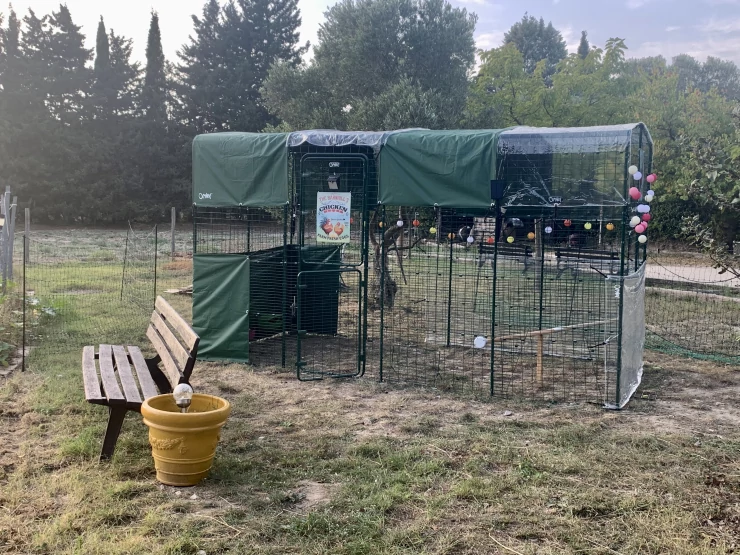 Caption: Grande recinto 2x2x4 con teloni opachi da 3 m e trasparenti da 2 m, posatoio da 2 m