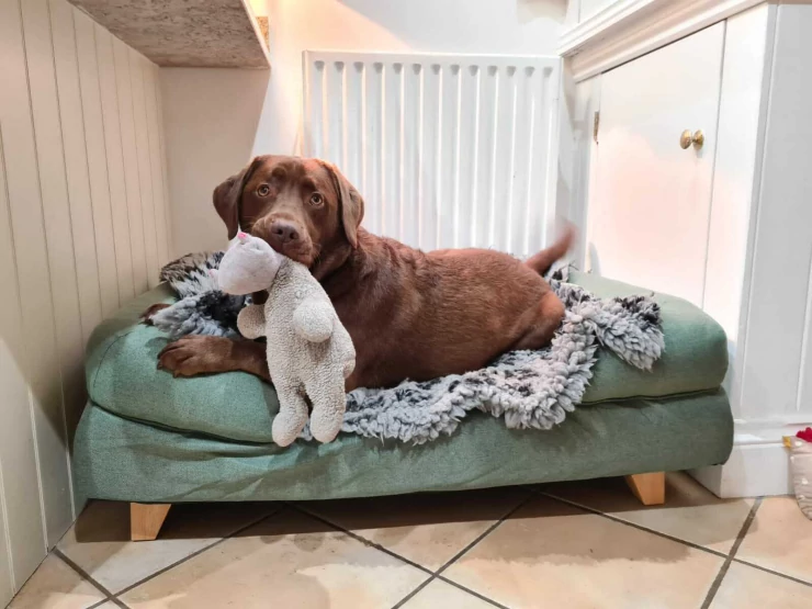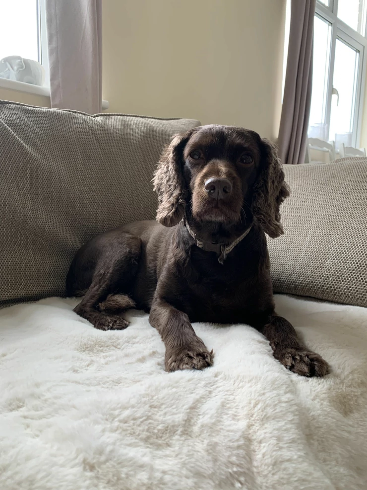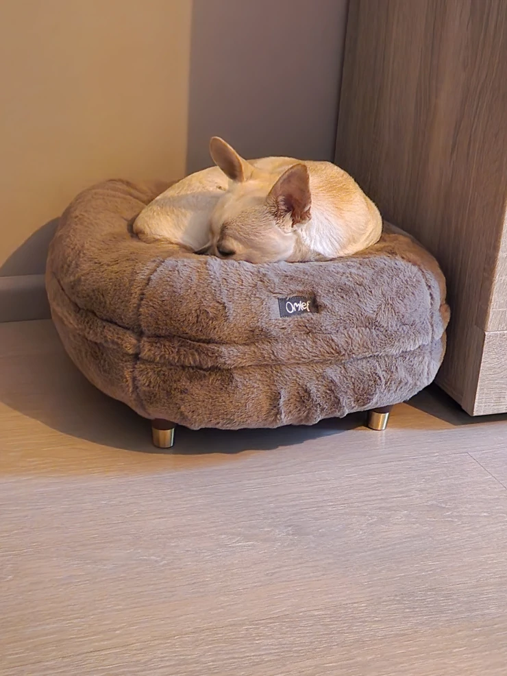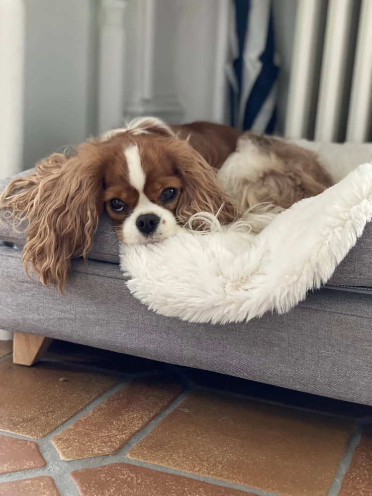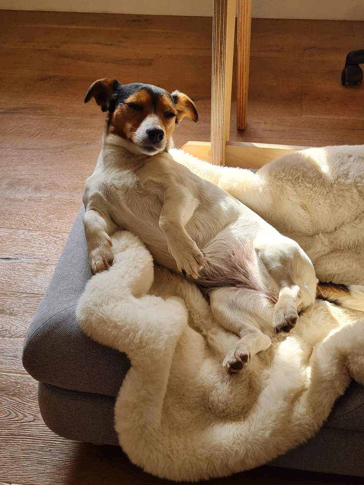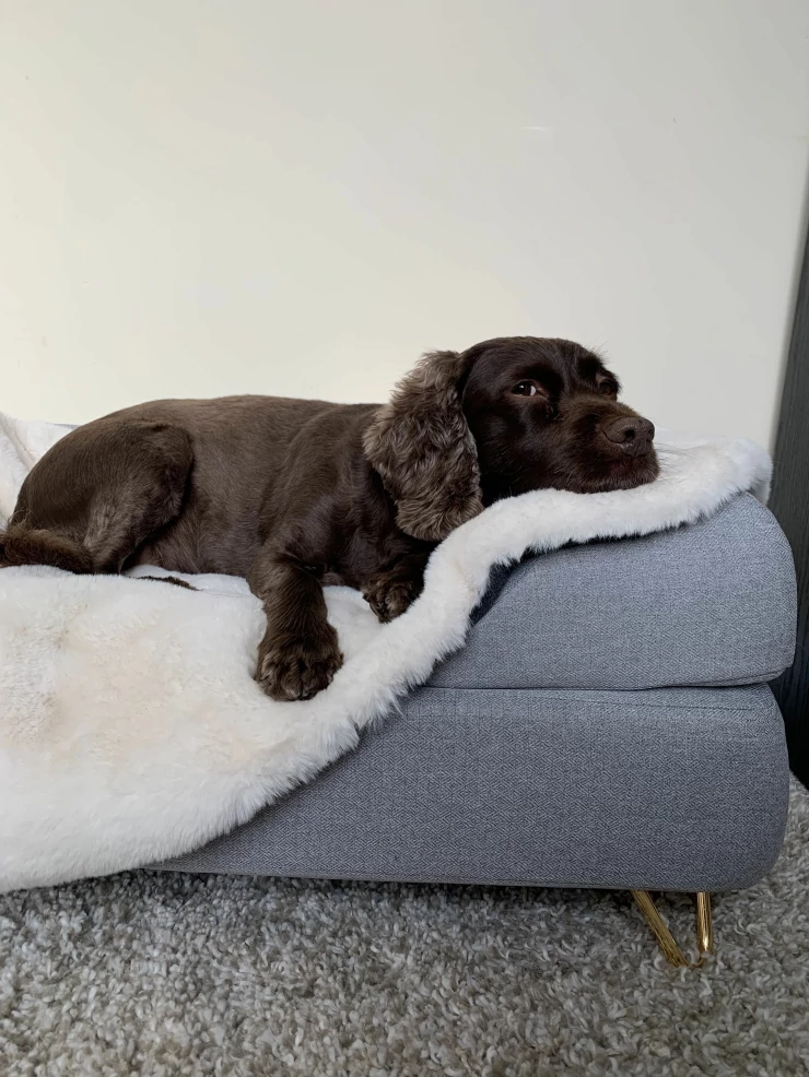 Caption: Al nostro cane piace molto la coperta di pelle di pecora, è molto morbida e funziona bene sul letto Topology! è bellissima anche da sola.